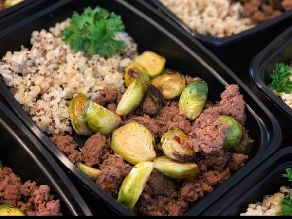 Sweet chili ground turkey served with roasted brussel sprouts and brown rice.