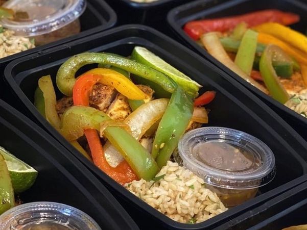 Served with grilled onions and bell peppers. Side of cilantro lime brown rice and salsa.